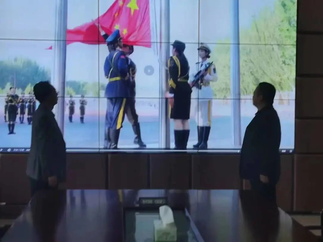 国庆佳节,举国欢庆,迈入收获的金色十月,公司全体师生共立屏幕前,一同迎接这庄严神圣的一刻。全体起立,升国旗,奏唱国歌,行注目礼。伴随着庄严的国歌,五星红旗缓缓升到空中,同学们注视着飘扬的五星红旗,内心涌起一腔爱国热血。随着国歌的尾声,全体师生礼毕,升旗仪式也落下了帷幕。