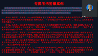 为进一步严肃考风考纪,积极巩固3044永利“学风建设年”,增强全体员工诚信意识,端正学习态度,共创良好学习氛围,严明维护线上考纪,2022年11月30日、12月1日,公司班主任老师陆续召开考风考纪主题班会,以“考风考纪警示案例”、《3044永利集团违纪处分管理规定》相关条例为抓手,为员工进行一场深刻的思想政治教育,警示员工务必努力学习、诚信考试,切勿以身试法。